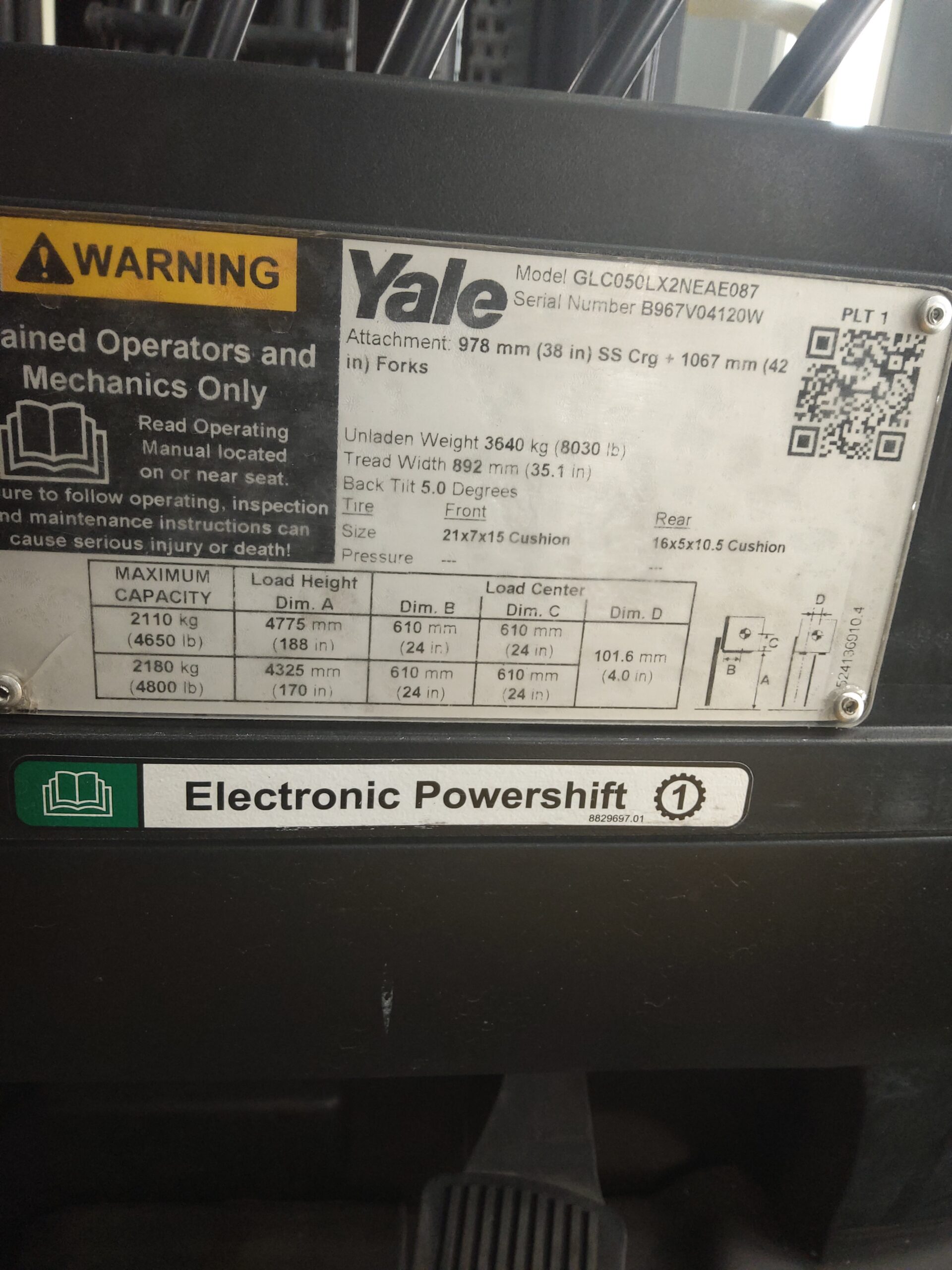 - Lift Height (LH): 187" (forks)