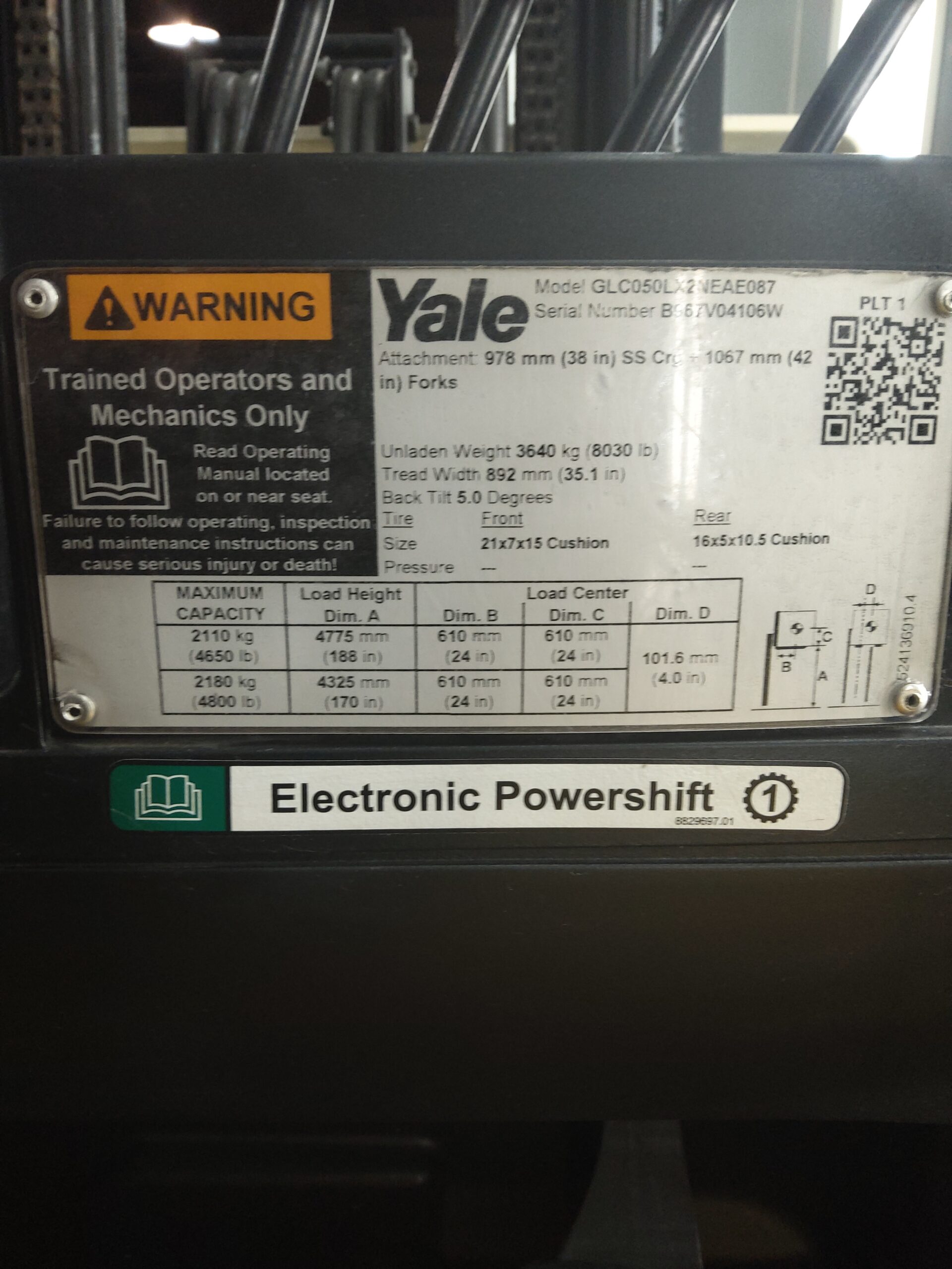 - Lift Height (LH): 187" (forks)