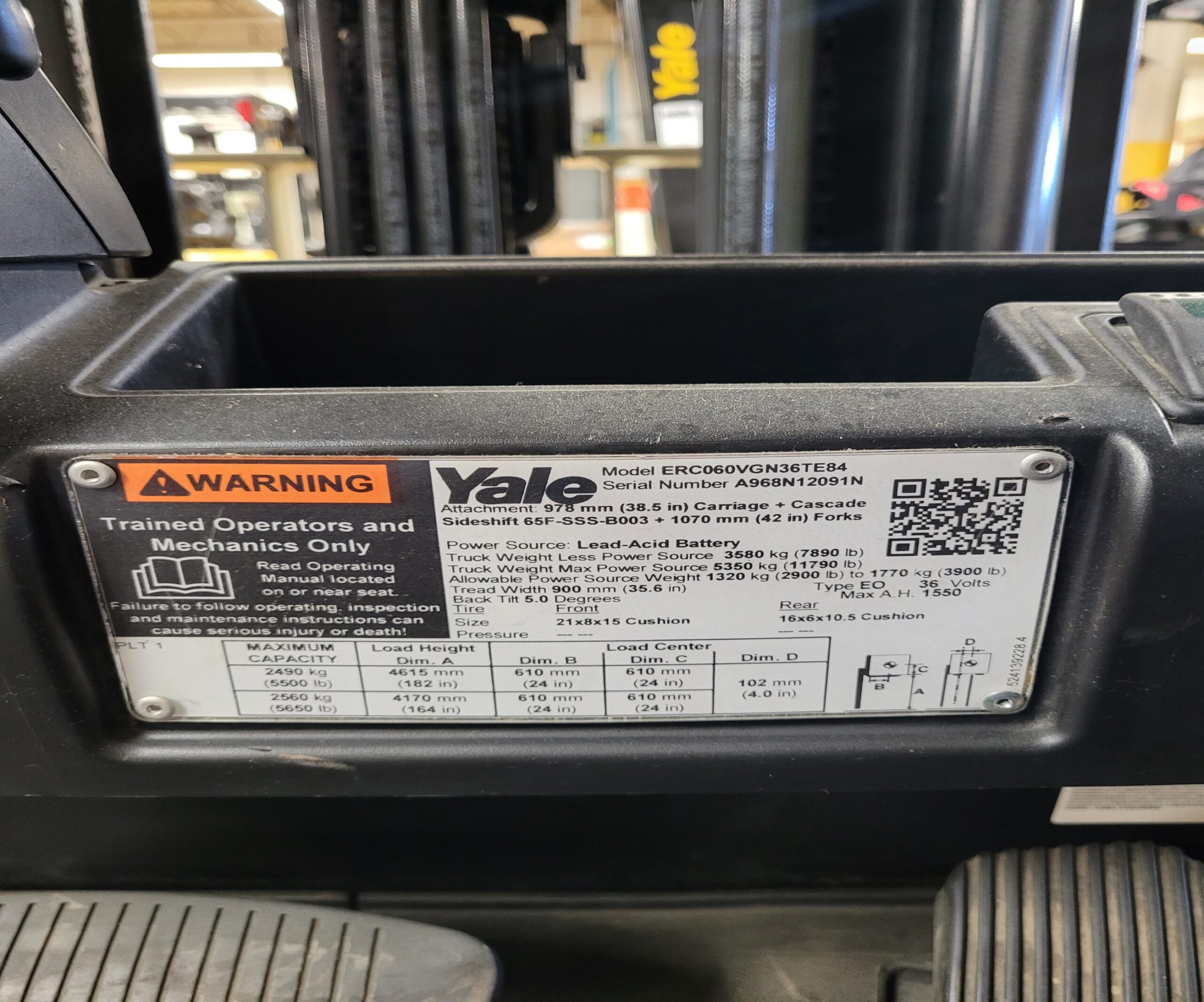- Lift Height (LH): 212″ (forks)